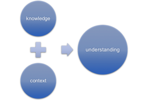 Adding context gives us a simple process or formula for understanding. We take information and put it into context to achieve understanding so knowledge + context = understanding. We touched on this when we discussed cause versus effect in the WDYMB…Risk? article. We can know the cause of an event but we need to put this into context and determine the effects to understand the risk it poses. There are more complicated and detailed models for understanding but this knowledge + context = understanding approach is a good start.